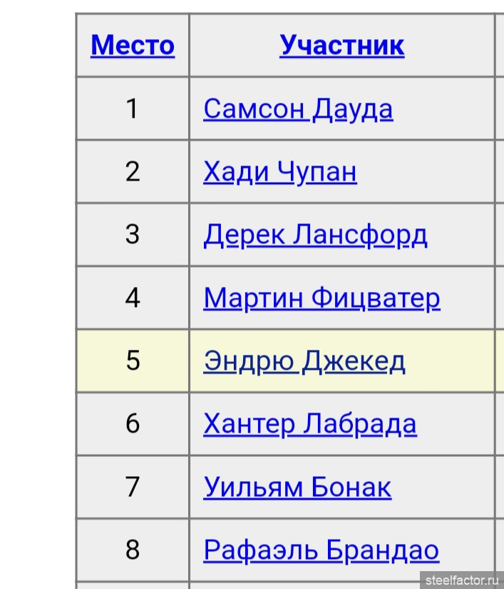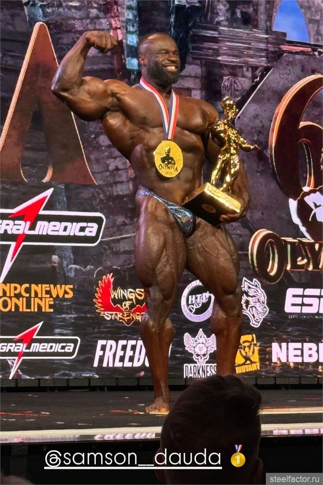 Может я и что то перепутал, но несколько лет назад видел на ютубе видос про атлета из Африки, он тренировался на улице с самодельными штангами и говорил, что мечтает стать Мистером Олимпии, это вроде он и был.Самсон!