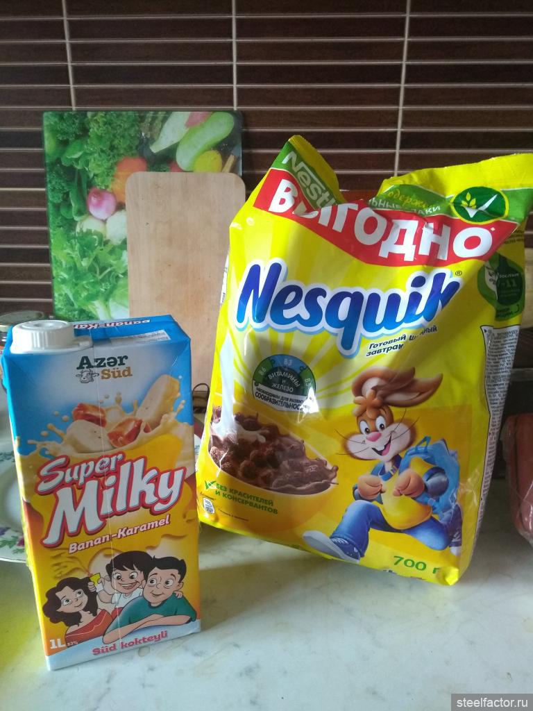 Еще на будущее взял карамельно-банановое молоко на скидке и 700гр шариков несквика ) Ням!