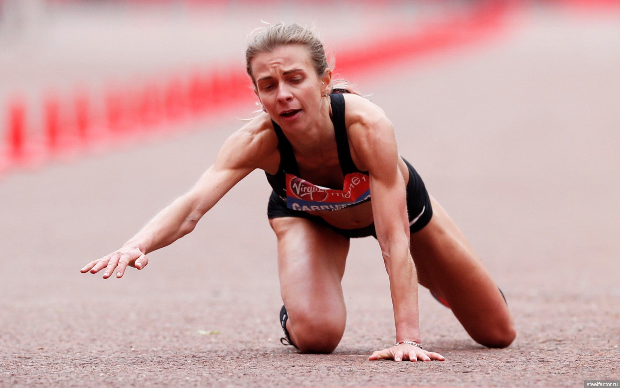 Формы в белых лосинах отпадные, а у упавшей марафонки сила воли из стали. Хотя на пляже она не конкурентка белым лосинам. Но ей пофигу.