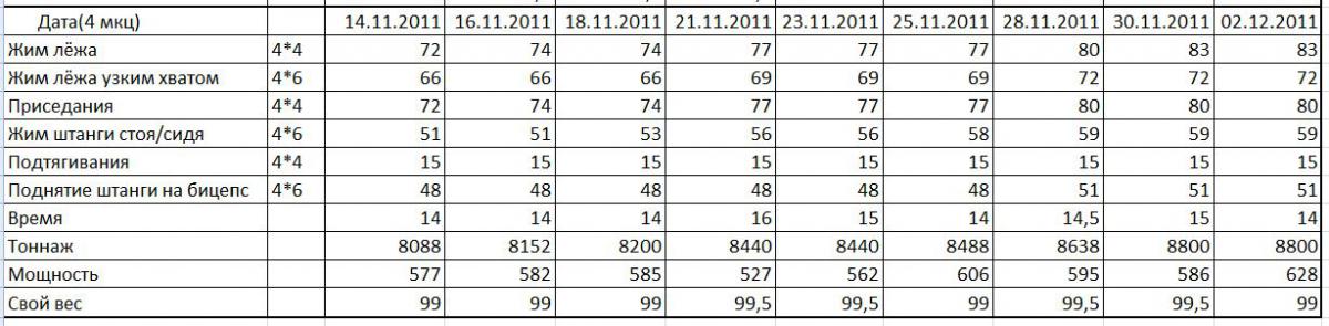 Расшифруй пож-та, строку "Подтягивания" везде по 15 кг.?? Наверно забыл добавить свой вес, т.е. 99+15. Так?