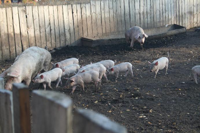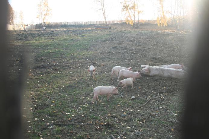 один из них подошел к забору и просунул пятачок в дырочку. я сказала ему - привет. а он что-то испугался и драпанул от меня с жутким визгом