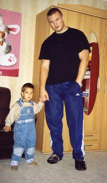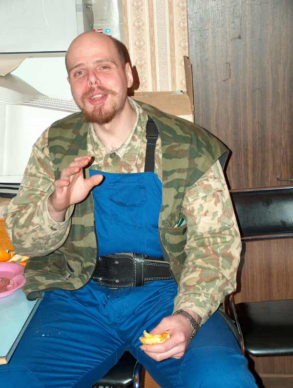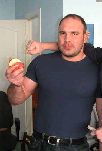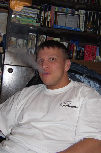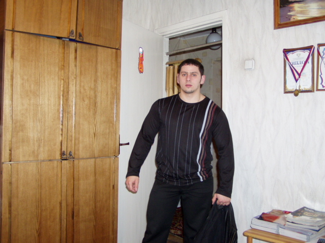 Инфа такая. У него сравнительно недавно кончился второй курс (в смысле он два подряд провел, не второй в жизни). Признается что провел его зазря. Ниче не набрал, а иммунитет сильно подорвал. В итоге уже на курсе заболел и сильно посыпался. Так что тут, по его словам практически скелет. Реально же с лета есть небольшая прибавка (чуть-чуть) плюс растет второй подбородок явно какой-то неестественный. Он щас над этим работает. Все привет передает, особенно Плюше с Йевой... Ну усе, пока больше фоток нету