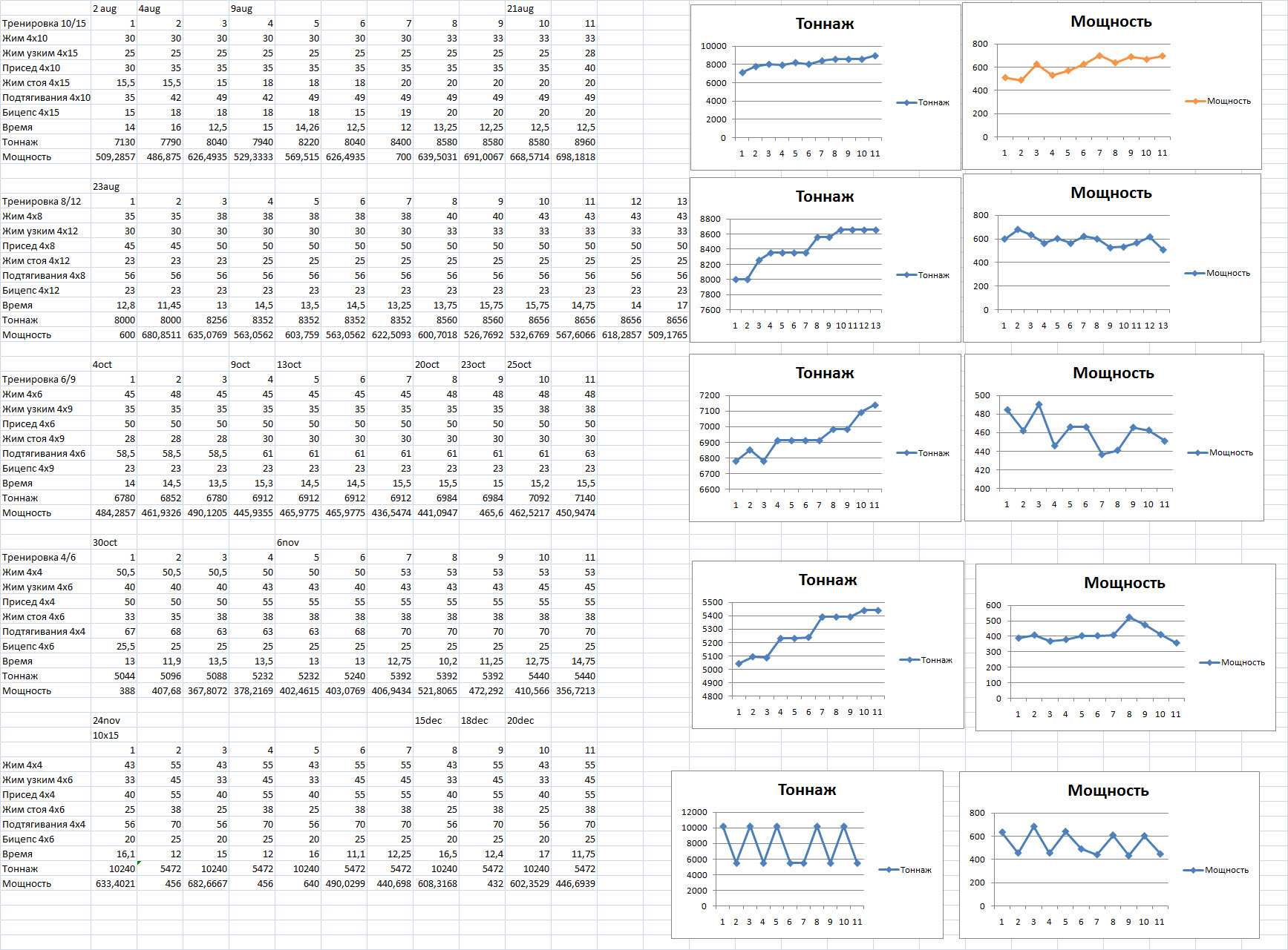 Сделал все, мощность чуть упала, но я специально паузы увеличил немного. Сделал более качественно, пульс ок, самочуствие ок на жухе даже прибавил до 52,5 вес.
