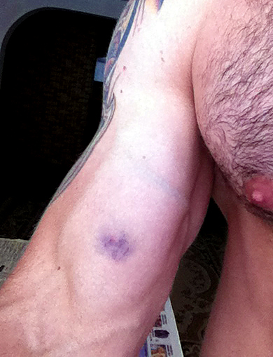 Это вот вчера гонаду поставил 0,5 куба инсулинкой, это уже 6 инжект её, до этого не было подобного, синяк появился практически сразу же...