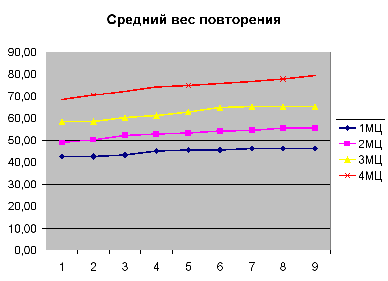 Она кажется несложной,потому что нет около предельных весов.Веса которые выдала таблица не составляли особого труда,поэтому я начал нарабатывать скорость в упрах и постепенно уменьшать отдых между ними.Также почти на всех упрах я пытался подготовить себя к последнему циклу отдыхая со штангой в руках.Это помогало сокращать время.
