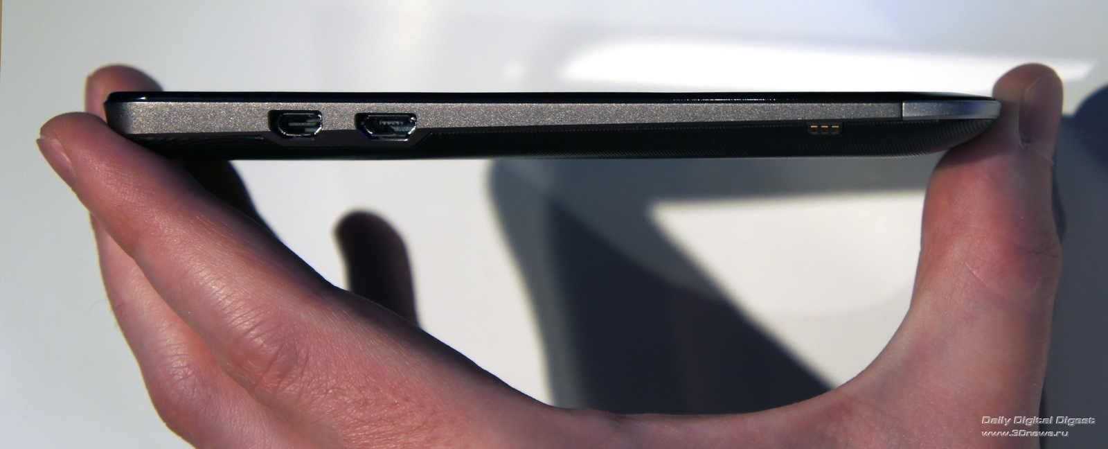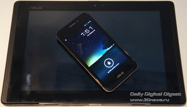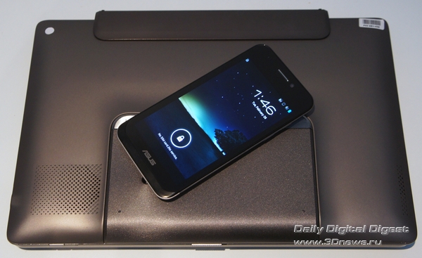 Под дисплеем – двухъядерный процессор Qualcomm S4 с частотой 1,5 ГГц. Скорее всего, тот самый MSM8960, который будет иногда попадаться во флагманском Transformer Infinity. Встроенной памяти от 16 до 64 Гбайт, имеется и слот для MicroSD. На задней стенке – 8-Мп камера, стандарт для современного смартфона на Android. Версия последнего, кстати, свеженькая – ICS. Что логично со всех сторон: с предыдущими версиями «зеленого робота» нормально совместить планшет и телефон в одной связке было бы проблематично.