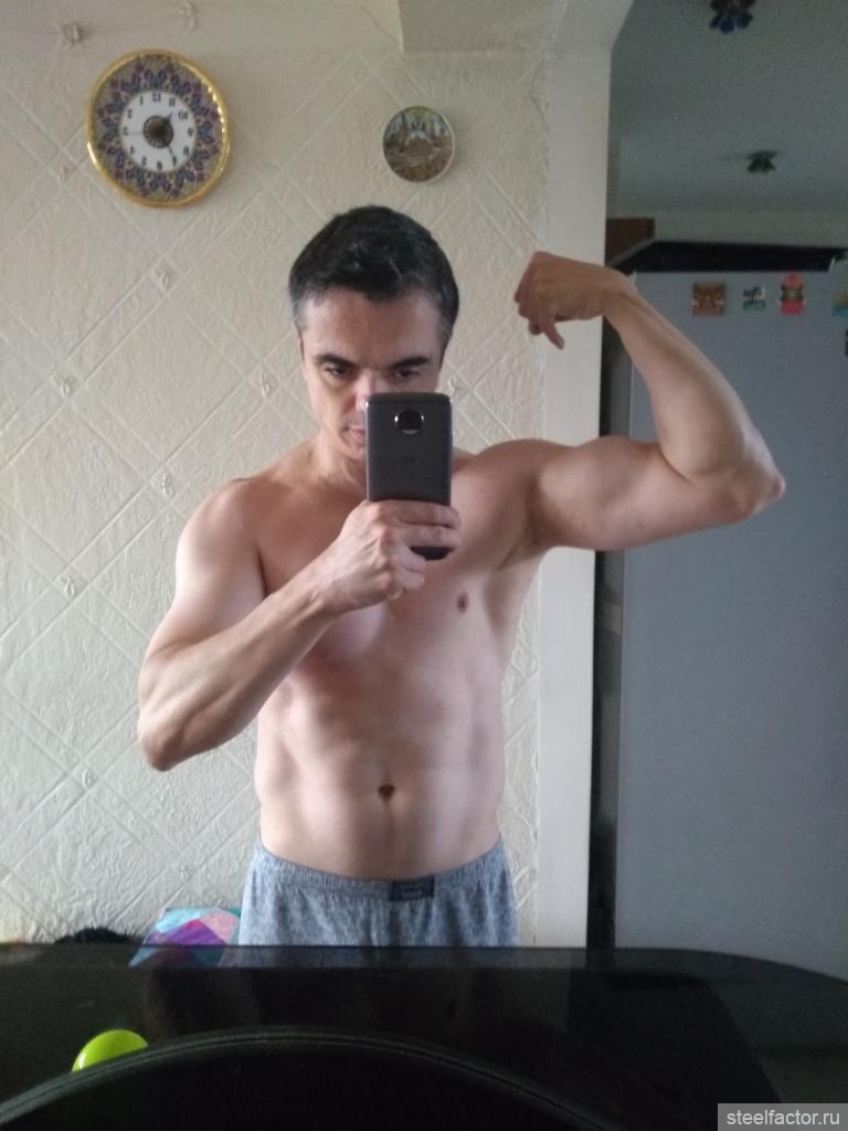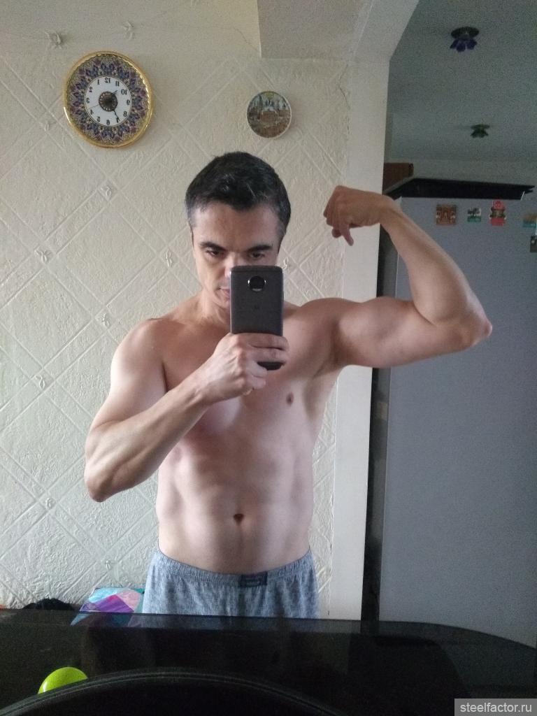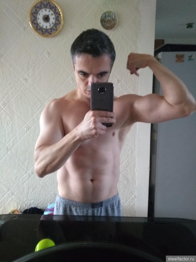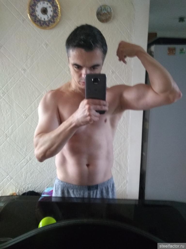 Провожу исследование n=1 на своих руках. Правая рука у меня в напряге по высшей точке бицепса (в позе двойной бицепс) 34.0см, левая 33.7см. В расслабоне (выпрямленная расслабленная рука) обе 32см - но чуть повыше к плечу, где трицепс более массивный. По тренингу правый и левый биц+триц получают нагрузку от жимовых и тянущих упров (подтяги, брусья, наклонные отжимания, тяга гантели в наклоне), плюс к этому правая рука получает изоляцию ПГНБ правой и разгибания гантели из-за головы. По видухе в позе двойной бицепс правый мощнявый и качкообразный, левый новичковый, но это было и до подключения изоляции. Посмотрим как будет продолжаться мясно-свидухеровое развитие обеих рук в этих условиях.