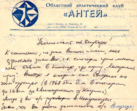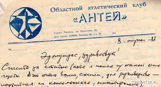 Алла Гусева пишет о том, что Э.Даубараса «выгнали из федерации». Вопрос: из какой федерации? Во времена запрета и преследования культуризма в течении десятилетий в СССР вплоть до образования Федерации культуризма СССР была только одна официально зарегистрированная федерация, которая имела юридический статус спортивной федерации культуризма и имела отдельное разрешение на финансовые операции. Это была Федерация культуризма (атлетической гимнастики) города Клайпеды. Как видно в приложении, на фирменном бланке федерации адрес местонахождения Э.Даубараса. Все другие организации СССР в лучшем случае были спортивными клубами, а не федерациями (см. приложения). Поголовно все органы по организации и руководству культуризмом в СССР, бывшие статусом выше спортивного клуба, юридически были лишь вольным собранием индивидуальных личностей культуризма, т.е. неофициальным субъектом. Этим и значится исключительное положение Федерации культуризма города Клайпеды, многие годы единственной в СССР имевшей столь высокий юридический статус. И этот статус городской федерации уважали и подчёркивали все, начиная от Госкомспорта СССР, заканчивая лично владельцем и президентом ИФББ БЭНОМ ВЕЙДЕРОМ (Ben Weider), президентом НАББА ОСКАРОМ ХЕЙДЕНСТАМОМ (Oscar Heidenstam), президентом и владельцем ВАББА СЕРЖЕМ НУБРЕТОМ (Serge Nubret). Смотрите соответствующие письма и документы на международном сайте www.wff.lt , читайте форум и исторические документы в номерах международного журнала «Спортивный фитнес и культуризм»). Добавьте к этому единственные официально разрешённые регулярно проводимые соревнования культуризма – «Янтарный приз» (опять в Клайпеде, опять тот же Э.Даубарас). На огромном территориальном пространстве не имея более ничего подобного, ежегодный «Янтарный приз» был неофициальным чемпионатом СССР по культуризму и это признал даже Госкомспорт СССР. Имея международный статус, не имея никаких возможностей выступлений в соревнованиях Запада, по факту «Янтарный приз» был неофициальным чемпионатом мира социалистических стран. Даже сегодня многие чемпионаты мира разных «международных федераций» не могут сравниться с «Янтарным призом» старых лет ни количеством участников, ни количеством участвующих стран ( к примеру, Э.Даубарас в 1989 г. на международный турнир «Янтарный приз» в Клайпеду из разных республик смог собрать команды 51 региона, а в категориях соревновались по 40 культуристов).