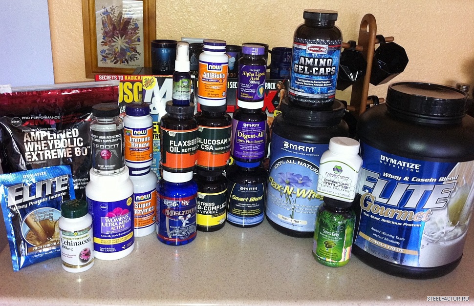 Я не принимаю никаких других средств для роста, кроме тех, что продаются в магазинах спорт питания. ДОбавок много, протеин, аминокислоты, спорт питание ДО и После каждой тренировки... вот фото всех добавок