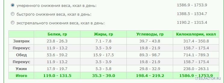 Прием пищи 5-6 раз в день. В таблице с гречей, но я ее меняю каждый день на разные каши, остальное не меняется.