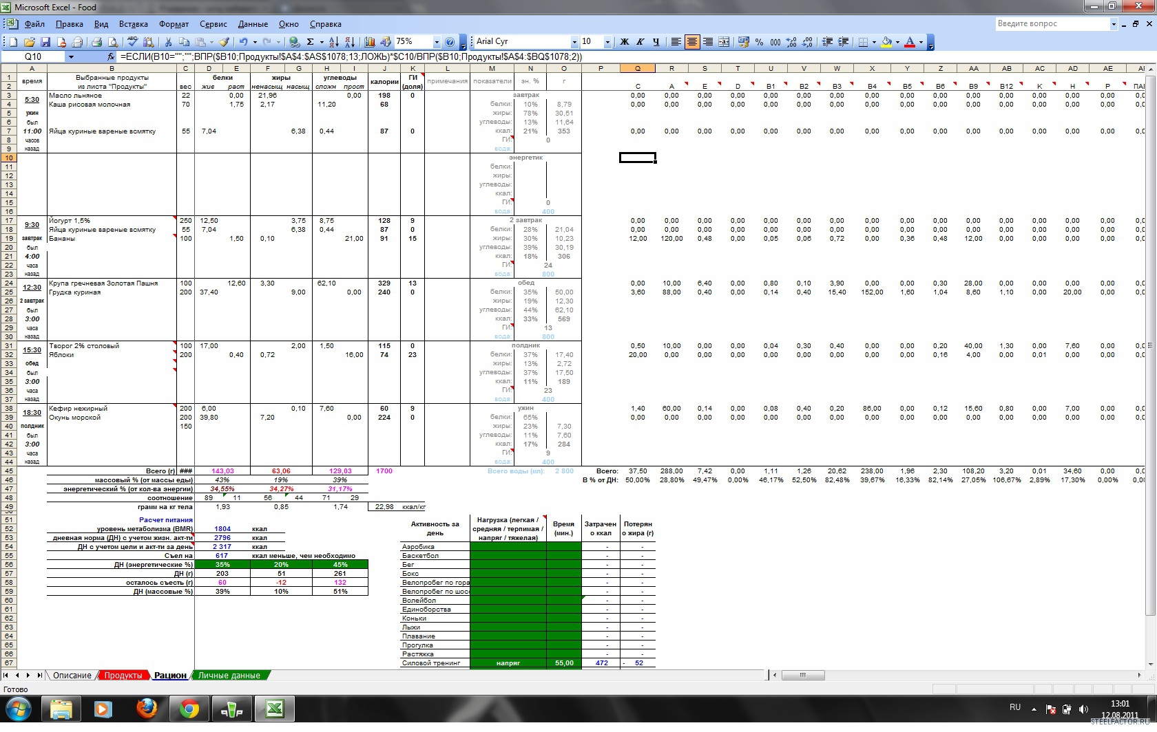 Ежедневная потребность в калориях по формуле Кетч-МакАрдл 2667ккал.