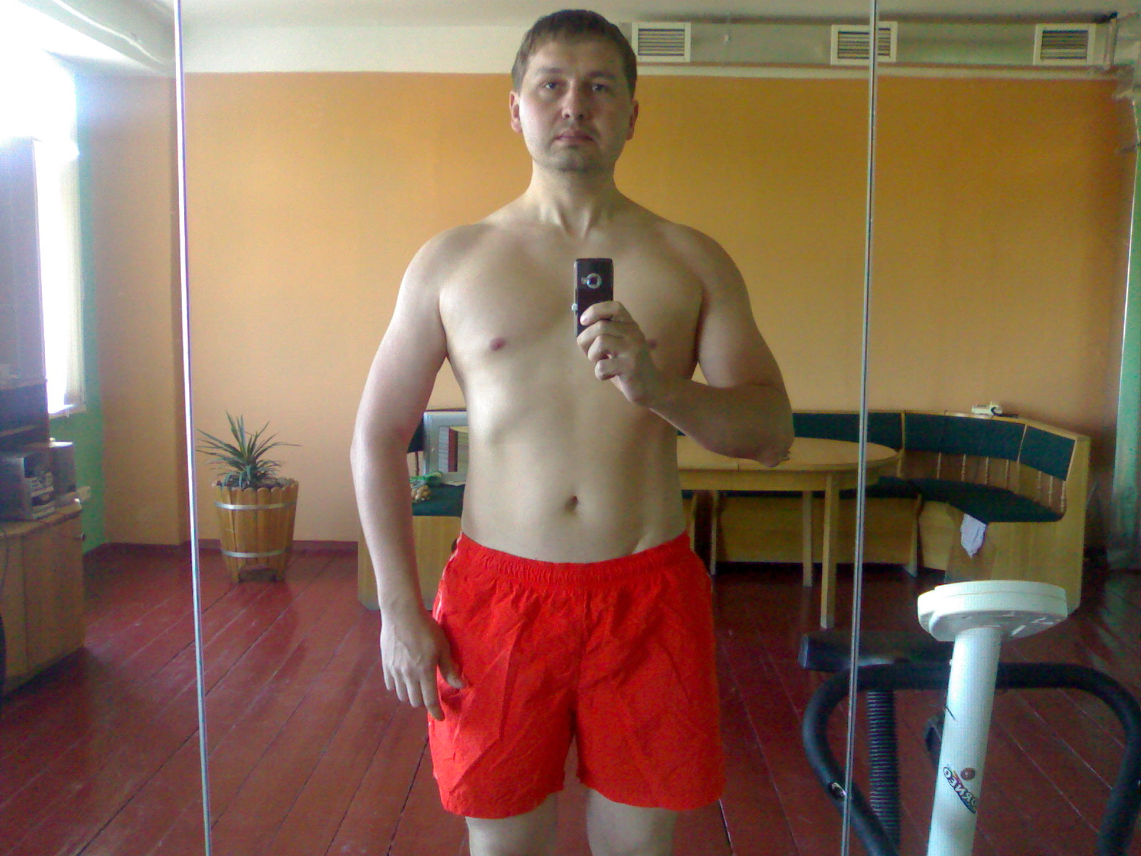 Спасибо) Пресс не качаю, прорисовался сам ) Просто питание поменял, под смт сам рельефиться начал) Ну и фотки с телефона, качество низкое, а вообще я сам когда в зеркало смотрю, уже и вены на руках хорошо видны, и волокна дельт.Молодец в отличной форме! Слыш а пресс ты качаешь или пресс сам прорисовалься?